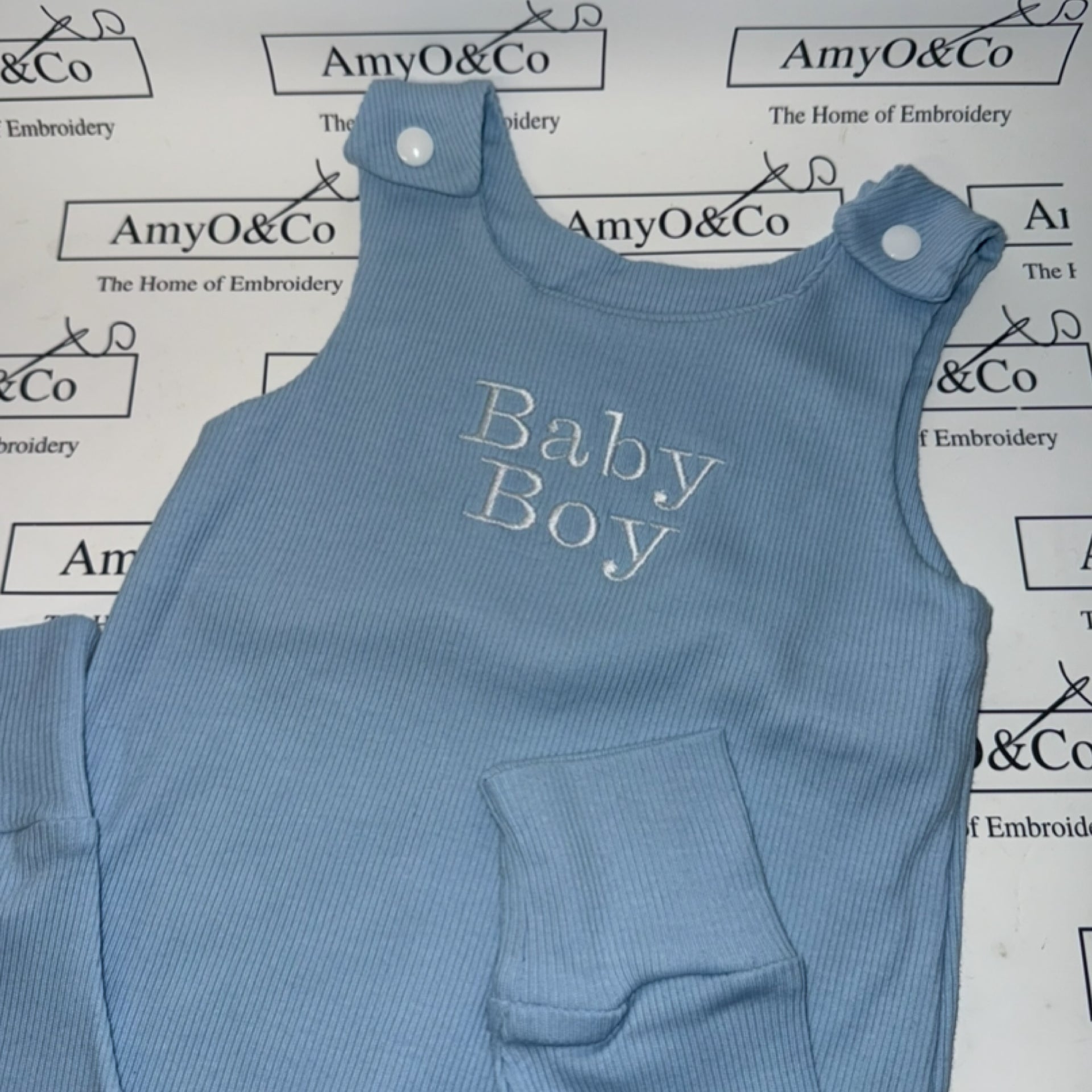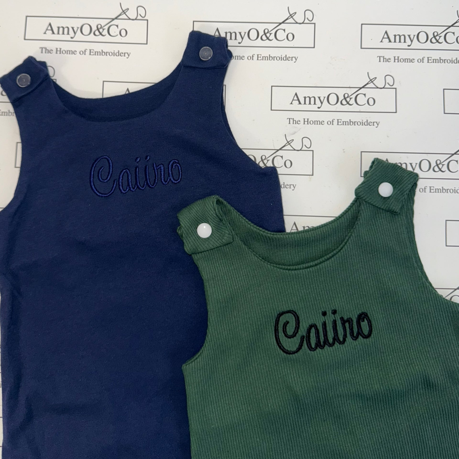 Fully embroidered with a name or initials.