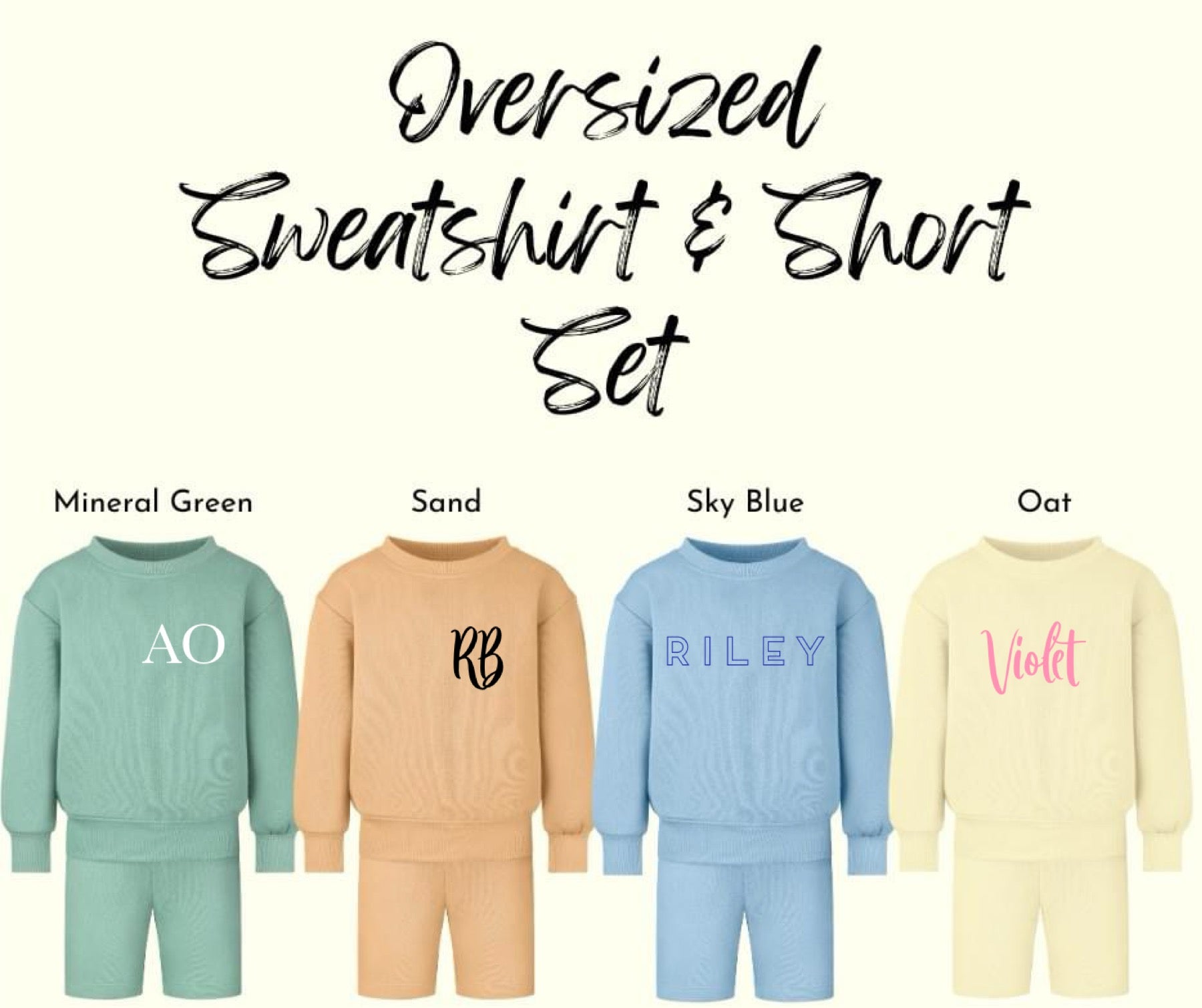 Slightly oversized relaxed fit sweatshirts with matching shorts